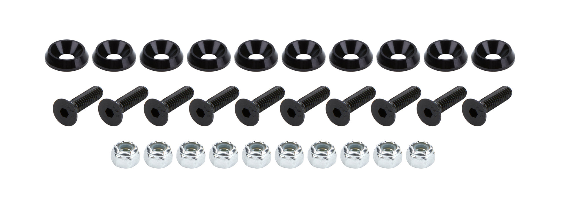 Countersunk Bolt Kit - 1/4-20 in Thread - 1 in Long - Allen Head - 0.75 in OD Countersunk Washers / Nuts - Aluminum / Steel - Black - Set of 10