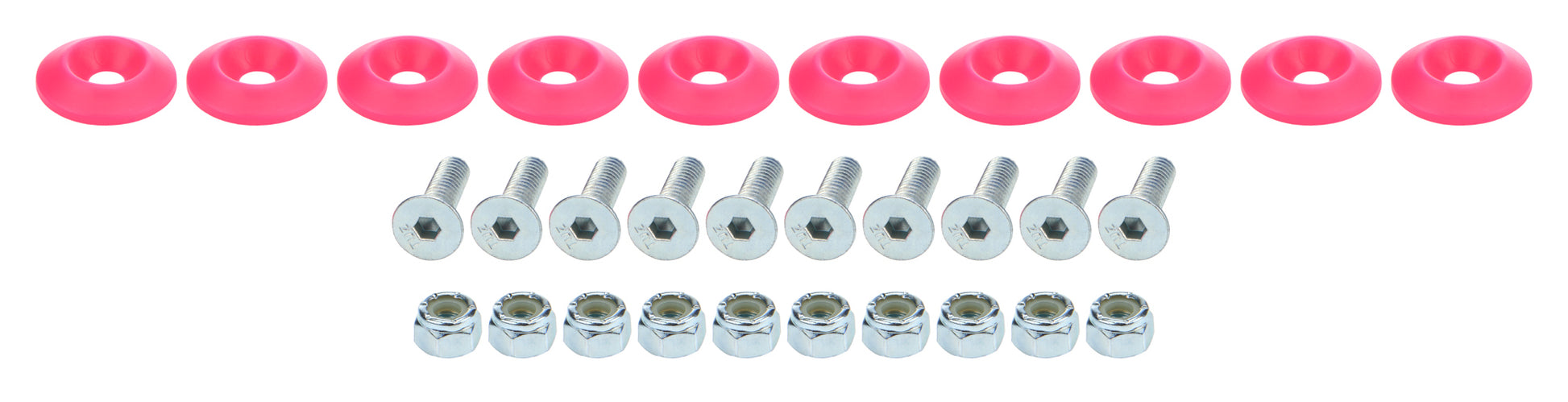 Body Bolt Kit - 1/4-20 in Thread - 1 in Long - Allen Head - Bolts / Countersunk Washers / Lock Nuts Included - Plastic / Steel - Pink / Zinc Oxide - Set of 10