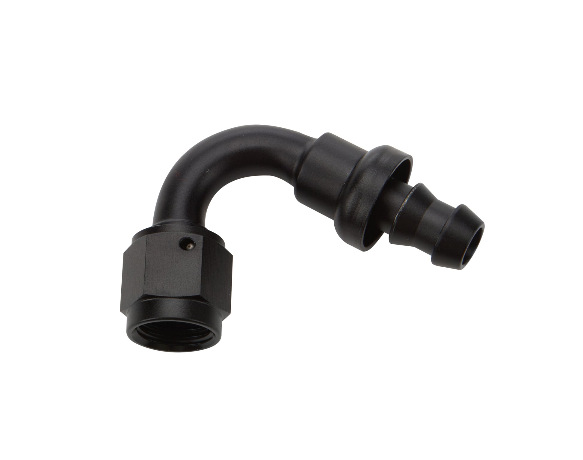 Fitting - Hose End - 120 Degree - 6 AN Hose Barb to 6 AN Female - Aluminum - Black Anodized - Each