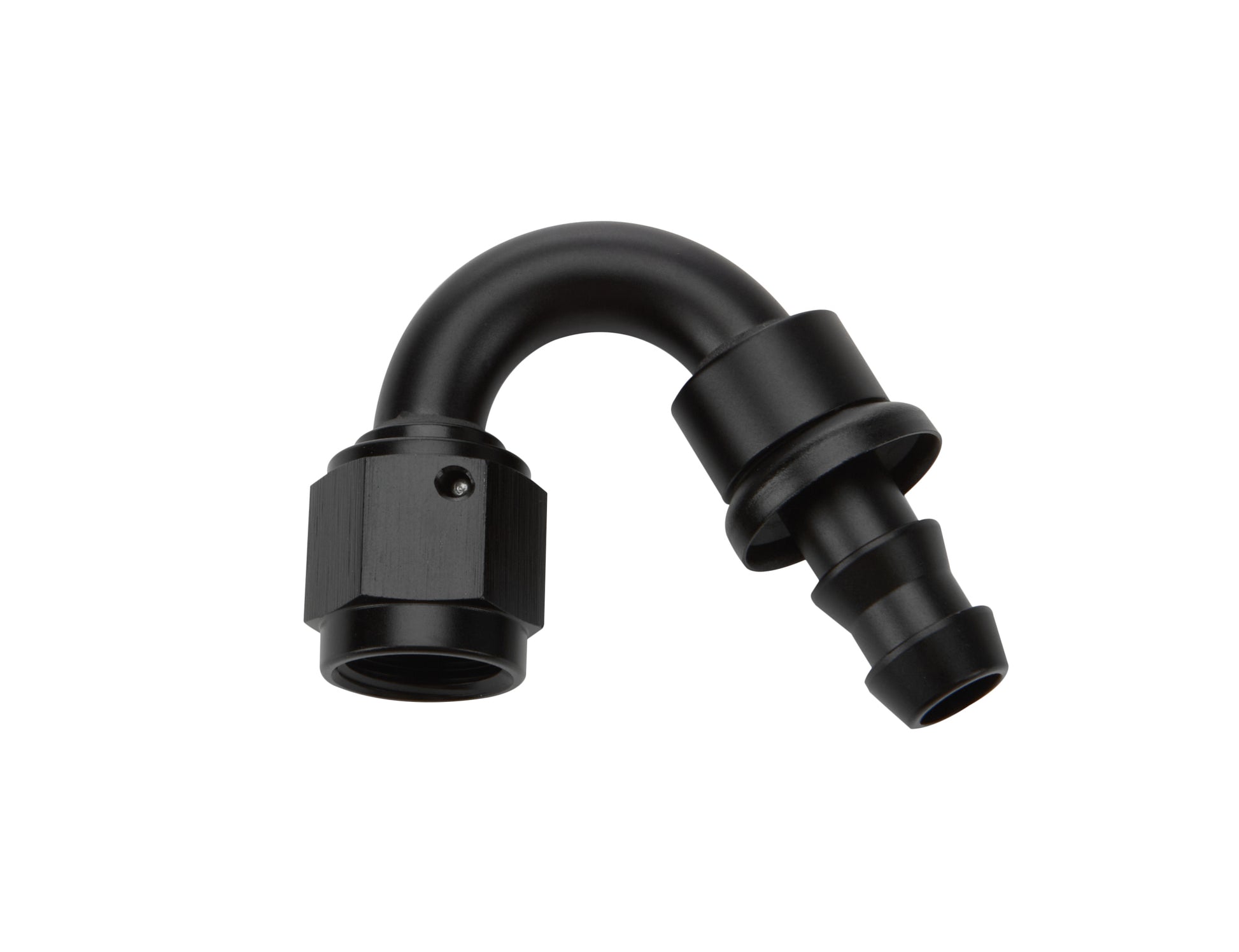 Fitting - Hose End - 150 Degree - 6 AN Hose Barb to 6 AN Female - Aluminum - Black Anodized - Each
