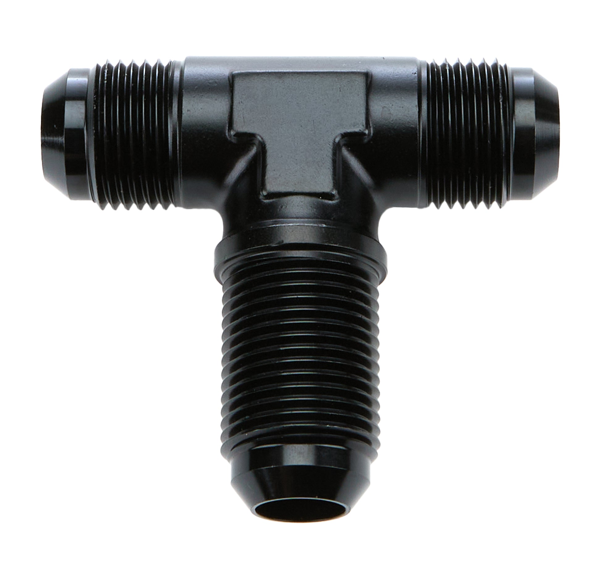 Fitting - Bulkhead Tee - 10 AN Male x 10 AN Male x 10 AN Male Bulkhead - Aluminum - Black Anodized - Each